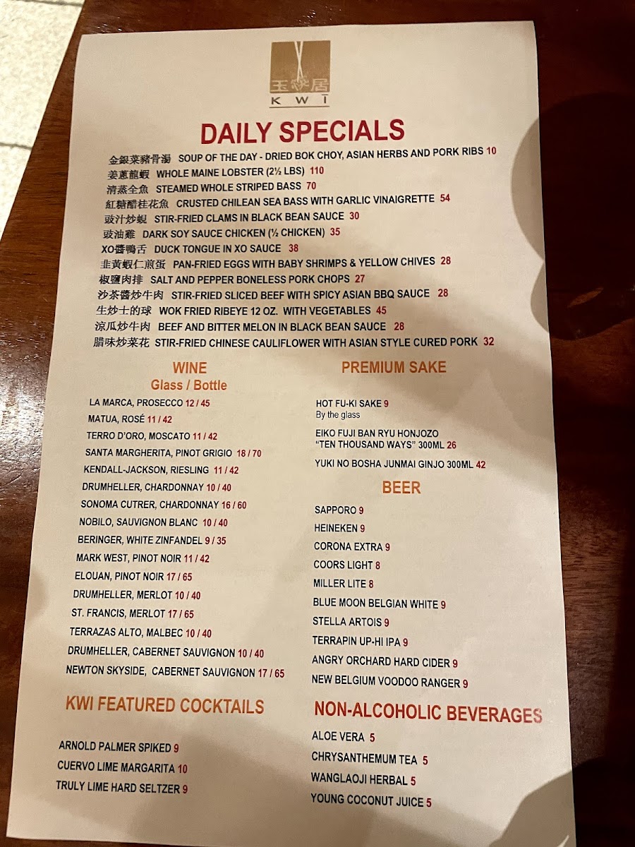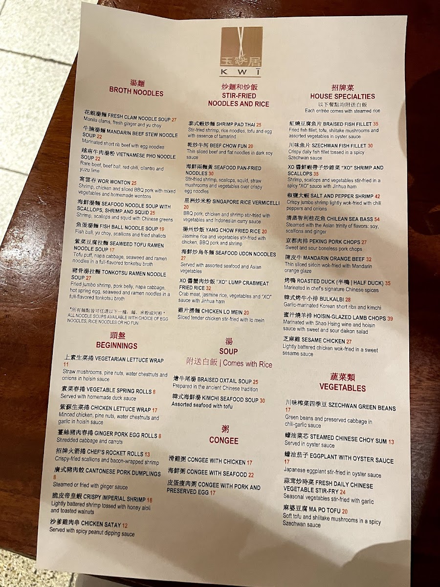 What truly sets Kwi Noodle House apart is its exquisite menu that showcases an array of beloved Asian dishes. Diners can indulge in the tender Dark Soy Sauce Chicken—a half chicken dish delicately prepared to melt in your mouth, or savor the rich flavors of Stir-Fried Clams in Black Bean Sauce, perfectly seasoned to awaken your palate. Seafood lovers will not want to miss the extravagant Whole Maine Lobster or the Crusted Chilean Sea Bass, executed with finesse and pride—two dishes that are sure to impress even the most discerning tastes.